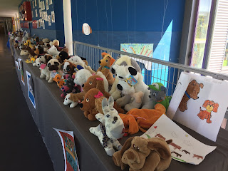 A achega do noso alumnado, tras explicarlle a razón de ser desta exposición, é a dos seus "cachorros" predilectos: reais, de peluche, xoguetes ou debuxados.